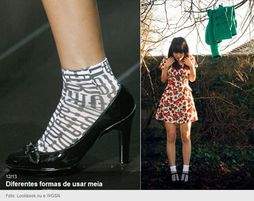 A meia soquete com salto alto foi hit nos anos 70, impulsionada no Brasil pela novela “Dancin’ Days”, que trazia dançarinas com meias curtinhas e coloridas de lurex. Sem o exagero dos brilhos daquela época, essa tendência sai das passarelas das últimas temporadas de moda e ganha as ruas neste inverno. No entanto, para investir na moda da meia curtinha é preciso cuidado – e a consultora de moda Juliana alerta: ela fica melhor nas mulheres jovens.