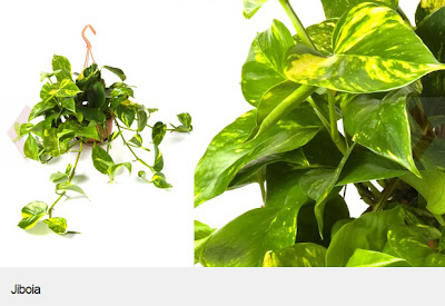 Uma das poucas trepadeiras para ambientes internos, a Jiboia cresce apoiada a substratos, como xaxins ou outras plantas. Esta planta tem as folhas coloridas, mas se ficar somente na sombra, suas folhas serão pequenas e verdes. É exatamente sua coloração em tons de verde e amarelo que faz com que seja muito usada na decoração. A rega deve ser feita com frequência, para manter o substrato úmido.